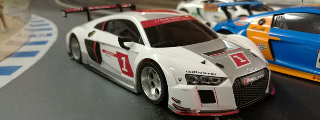 24.02.2017 - DTM (1/24) / Scaleauto (1/24): Der Auftakt zur kurzen Testsaison 2017 der beiden Rennserien DTM und Scaleautocup ist gelungen. Das Auftaktrennen der DTM gewinnt Hä-Jü mit einem Mercedes CLK vor Harry mit seinem neu aufgebauten Audi RS5 DTM. Auf den dritten Platz konnte sich Kai trotz einiger Abflüge mit seinem Audi A4 gerade noch retten. Im Scaleautocup gab es umfangreiche Reglementänderungen, die die Performance der Fahrzeuge dichter zueinander gebracht hat. Es kommt ein neuer Motor (SRP 25.000 Long Can) mit einer festen Übersetzung (12/43) zum Einsatz. Die Spurbreite wurde einheitlich auf maximal 80mm festgelegt. Im Rennen hatte Ha-Jü in der mittleren Startgruppe eine super Leistung vorgelegt, die trotz mächtigem Druck der beiden Audi R8 LMS von Robin und Kai nur knapp nicht erreicht werden konnte. So gewann Ha-Jü dieses Rennen vor Robin und Kai. Informationen zum DTM-Rennen gibt es auf der Homepage von Hopfa-Slot und zum Scaleautocup des RCA auf der entsprechenden Clubseite.